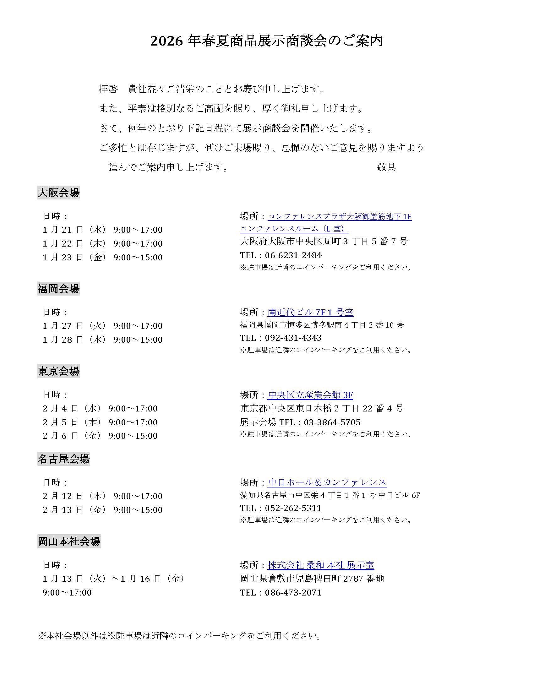 2026年 春夏商品展示商談会のご案内